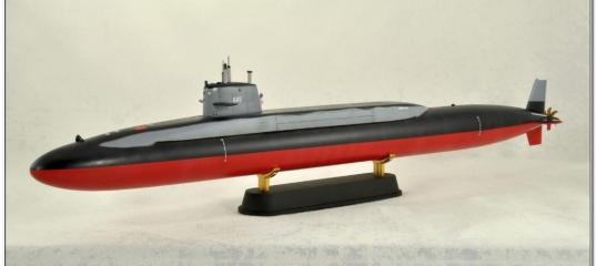 В наборе 18 деталей из пластика, 2 детали фототравления (лопасти гребного винта и обтекатель антенны на рубку). Длина модели около 370 мм, ширина – 28,1 мм.