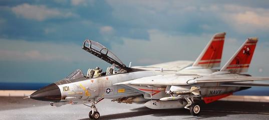 HobbyBoss 1/72 F-14D Super Tomcat"Òîìêýò" Ýòî ìíîãèìè ëþáèìàÿ ìàøèíà. Ïàðó "ãîëëèâóäñêèõ" øåäåâðîâ óñèëèëè ýòî ÷óâñòâî. Ìíå F-14 Tomcat òîæå è äàâíî ïðèÿòåí. Êàê îáû÷íî âñ¸ íà÷èíàåòñÿ ñ êàáèíû. Ñìîëÿíàÿ äîðàáîòêà íå î÷åíü ïîêàçàëàñü ïðîïîðöèîíàëüíîé. Ïðèøëîñü íåìíîãî ïåðåïèëèòü. Âíóòðü, ëåãëà áîëåå ìåíåå áåç ïðîáëåì. Êàêîå òî âðåìÿ, ïîñëå ïîäãîíêè êàáèíû ìîäåëü ëåæàëà. Ïîòîì, ÷òî áû ïîó÷àñòâîâàòü â òóðíèðå "Ìàðòîâñêèå êîòû", âçÿë è äîäåëàë.. áåç âñÿêèõ ïåðåêðîåâ è ïåðåïèëîâ. Êðàñèë â îñíîâíîì "Ãóíöåé". Äåêàëè ðîäíûå è ÷àñòü òåõíè÷êè îò äðóãèõ íàáîðîâ. Òîíèðîâàë ðàçíûìè ñïîñîáàìè. Äàæå ïîïðîáîâàë ïðèåì "ìàñëÿííûå òî÷êè". Ïîäâåñêó èñïîëüçîâàë òîæå è ðîäíóþ è èç õàñåâñêèõ íàáîðîâ.  ïðîöåññå ñáîðêè, ê ñîæàëåíèþ, ÿ íå äåëàë ôîòîñåññèé. Òàê ÷òî ïðèäåòñÿ ïîêàçàòü ãîòîâûé àïïàðàò. Òåì áîëåå ÿ ìîäåëü îòôîòîãðàôèðîâàë ïî íîâîé. Ïðèÿòíîãî ïðîñìîòðà. |