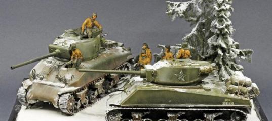 Диорама 1/35 На БастоньНа диораме момент когда танки генерала Паттона вышли в январе 1945 года к окруженным американским частям в городе Бастонь. Диорама построена в 35 масштабе из моделей танков М4А1 Италери и "Джумбо" Таска.Фигурки от Миниарт (головы заменены на Хорнет) и Алпин.Покраска Тамия,Валехьо. Снег из соды с ПВА.Сосна большая изготовлена из проволоки.Танкам изготовлен интерьер. На диораме момент когда танки генерала Паттона вышли в январе 1945 года к окруженным американским частям в городе Бастонь.Сражение в Арденнах это называется у историков.Подробно здесь. |