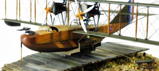 Îäíàêî óòðîì áûë íåïðèÿòíî óäèâëåí òåì, ÷òî êðàÿ äåêàëåé ïðèïîäíÿëèñü, ïîÿâèëîñü ñåðåáðåíèå ïî êðàÿì. Êîêàðäà ñ êîðïóñà âîîáùå ïðè ïîïûòêè äîâåñòè åå äî óìà ïðîñòî îòêëåèëàñü îò íåãî. Ëàäíî, ðàç òàê, äóìàþ, óáåðó äåêàëè, ñäåëàþ òðàôàðåòû, íàïûëþ êîêàðäû è íîìåðà. Íî íå òóò-òî áûëî. Íîìåðà ñ êîðïóñà íå õîòåëè óáèðàòüñÿ ïîëíîñòüþ íèêàê. Ïðèøëîñü ñîøëèôîâûâàòü âñþ ñâîþ èìèòàöèþ ôàíåðû è âñå ðèñîâàòü çàíîâî. Êðûëüÿ íå ñòàë òðîãàòü, íàíîñèòü ñíîâà èìèòàöèþ íåðâþð (çàøèâêè íåðâþð), ïðåøåéäèíã, íå õâàòèëî íà ýòî äóõó, òàê è îñòàâèë ñåðåáðåíèå íà íèõ, ÷óòü óìåíüøèâ ýôôåêò íàíåñåíèåì ìàòîâîãî ëàêà.  îñòàëüíîì ñòðîéêà øëà êàê îáû÷íî, íåìíîãî ïîâîçèëñÿ ñ äâèãàòåëÿìè, ïî èíñòðóêöèè äîëæíû áûëè áûòü Liberty, à íà äåëå ïðîèçâîäèòåëü ïîëîæèë Rolls-Royce Eagle IV. Ïðèøëîñü èçâîðà÷èâàòüñÿ. Ñûìèòèðîâàë èíòåðüåð ñàëîíà, õîòÿ åãî äîâîëüíî ñëîæíî ðàññìîòðåòü íà ìîäåëè, îáèëèå ðàñòÿæåê, òÿã è ïðî÷åãî «òàêåëàæà» âûçûâàåò îïàñåíèå ëèøíèé ðàç áðàòü ìîäåëü â ðóêè. Ðàñòÿæêè áûëè èçãîòîâëåíû èç ñïàíäåêñà, ïðîäåòûå â 0,3 ìì ìåäíûå êîëå÷êè, âêëååííûå â ïëàñòèê, îêðàñêà - àêðèëîâûå è ìàñëÿíûå êðàñêè.