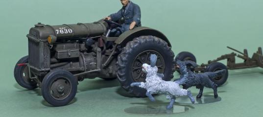 Òåïåðü íóæíî áûëî ðåøàòü âîïðîñ î ïðèêëàäå. Äëÿ ðàííåãî òðàêòîðà ïðèïàñåíà áî÷êà-ïðèöåï äëÿ çàïðàâêè ñàìîë¸òîâ îò âñ¸ òîé æå Accurate Armour, âîò òîëüêî ðóêè äî íå¸ íå äîøëè. Ïîýòîìó ïóñòü ïîêà âîçèò ìàñëîçàïðàâî÷íóþ òåëåæêó îò ProModeller. Êî âòîðîìó òðàêòîðó áûëè ïðèîáðåòåíû òðàíñïîðòèðîâî÷íûå áîìáîâûå òåëåãè RAF Bomb Trailer Type “B” îò ìîñêîâñêîé ôèðìû Scale Bureau (48009). Ïîëó÷èëñÿ ñèìïàòè÷íûé ïîåçä! Íà ôîòî îí ãîðàçäî äëèííåå. Ìîé îãðàíè÷èëñÿ äâóìÿ òåëåãàìè èç-çà äëèííû ïîëêè. È ñîáà÷êè íàøëè ñâî¸ ìåñòî.