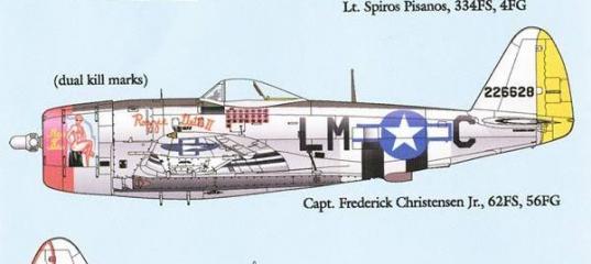 Ñîáñòâåííî ðàäè ýòîãî âàðèàíòà ÿ è ïîêóïàë ýòó äåêàëü. ßðêèé è ïåñòðûé ðàñêðàñ, îäíîãî èç ëó÷øèõ àñîâ, ëåòàâøèõ íà Ð-47 – Ôðåäåðèêà Êðèñòåíñåíà (21.5 ïîáåäû – 5 ìåñòî ñðåäè àñîâ íà Ð-47 è 12-å ñðåäè Àñîâ ÑØÀ â WWII).  îòëè÷èå îò èçâåñòíîãî ïèëîòà, ôîòîê ýòîãî ñàìîëåòà, íà êîòîðîì îí ñáèë 2 ñàìîëåòà (27.06.44 Bf-109 ó Villeneuve è 5.07.44 FW-190 ó Beziers – âñå íàä Ôðàíöèåé), ÿ íå íàøåë.