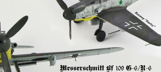 Çâåçäà 1/48 Bf 109 G-6/R-6Ïðèâåòñòâóþ óâàæàåìîå ñîîáùåñòâî! Ëåò÷èê:Ðîäèëñÿ 02.11.1919 ã. â ã. Âàííå-Àéêåëü. 01.11.1937 ã. Àëüôðåä Ãðèñëàâñêè âñòóïèë â Ëþôòâàôôå è ïîñëå îêîí÷àíèÿ ëåòíîé ïîäãîòîâêè â çâàíèè óíòåð-îôèöåðà â íîÿáðå 1940 ã. ïðèáûë â 9./JG52. Îí ó÷àñòâîâàë â áîÿõ íàä Áàëêàíàìè è îñòðîâîì Êðèò, íî óñïåõà íå äîáèëñÿ. Ïåðâóþ ïîáåäó îí îäåðæàë 01.09.1941 ã. íà Âîñòî÷íîì ôðîíòå. Âñåãî îí ñîâåðøèë îêîëî 800 áîåâûõ âûëåòîâ, è ñðåäè ñáèòûõ èì ñàìîëåòîâ áûëè 17 Â-17 è îäèí Â-24. Ñ 1956 ã. Ãðèñëàâñêè ñëóæèë â Áóíäåñëþôòâàôôå ÔÐÃ. Ñêîí÷àëñÿ 19.09.2003 ã. Ìîäåëü:Ê ñîæàëåíèþ ó ìåíÿ çíà÷èòåëüíûå ïðåòåíçèè ê ôèðìå «Çâåçäà»: íàðÿäó ñ õîðîøåé ñòûêóåìîñòüþ (øïàêëåâêè èñïîëüçîâàí âîîáùå ìèçåð) è ñíîñíîé òî÷íîñòüþ ïðèñóòñòâóåò äîâîëüíî òàêè áîëüøîå êîëè÷åñòâî êîñÿêîâ, à èìåííî: íåâíÿòíàÿ ðàñøèâêà, êîòîðóþ (ê ñâîåìó ñòûäó) ÿ íå óãëóáèë è èìåë ìàññó ïðîáëåì ñ íàíåñåíèåì ñìûâêè, íåâåðíîå ðàñïîëîæåíèå íåðâþð â ýëåðîíàõ (ïðèøëîñü ñíîñèòü è íàêðàøèâàòü ãðóíòîì), îòñóòñòâèå íèæíåé æàðîïðî÷íîé ïàíåëè ïîä ïàòðóáêàìè, íåâåðíîå ðàñïîëîæåíèå ðîçåòêè è çàïðàâî÷íîé ãîðëîâèíû MW50 (ñëèøêîì áëèçêî), îòñóòñòâèå ïîðòîâ âûáðîñà ãèëüç èç MG131 (â ìîäèôèêàöèè R-6), àáñîëþòíî íåâíÿòíûå òêàíåâûå øâû â íèøàõ, ìåñòàìè íåâåðíàÿ ðàñøèâêà, äåêàëè ñî ñìåùåíèÿìè.
