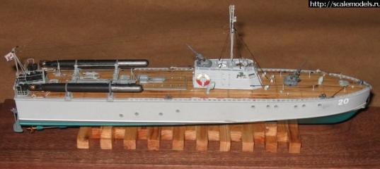 Торпедный катер Д-3.Масштаб 1/100Как говорится "...и чтобы дважды не вытирать саблю..."Продолжим.Потребность в более мореходном катере и с лучшей обитаемостью и возможностью использования в зимнее время вынудило создать другие катера. А еще один существенный момент тоже сказал свое слово. Г-5 мог пускать торпеды только НА ХОДУ. Он фактически из-под них выскакивал. Сбросить или выстрелить торпедой на стопе он не мог. Поэтому был спроектирован и массово запущен в постройку катер Д-3. "Д"-значит деревянный.В скорости он немного проигрывал,зато на нем был даже камбуз/ типа/, обогрев,бугельные аппараты позволяли осуществить пуск торпеды даже без движения. Дерева в России много. Вот и клепали их во многих местах, даже далеких от морей, потому что катера проходили и по рекам.После войны многие переквалифицировали в малые охотники,а некоторые сразу строили по проекту ОД-200 как охотники.И еще изрядное количество лет после войны служили они и в Польше,и в Болгарии, и в Китае и еще а разных странах. |