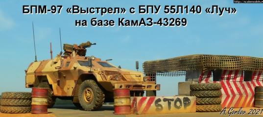 Âàøåìó âíèìàíèþ ïðåäñòàâëÿåòñÿ ìîäåëü áðîíåòðàíñïîðòåðà ÁÏÌ-97 «Âûñòðåë» ñ ÁÏÓ 55Ë140 «Ëó÷» íà áàçå ÊàìÀÇ-43269 4õ4 îò Alexminiatures. ÈñòîðèÿÐàçðàáîòêà íà÷àëàñü â 1997 ãîäó â Íàó÷íî-ïðîèçâîäñòâåííîì öåíòðå «Ñïåöèàëüíîå ìàøèíîñòðîåíèå» (ÍÏÖ ÑÌ) ÌÃÒÓ èìåíè Í. Ý. Áàóìàíà ñîâìåñòíî ñ ÊàìÀÇ. ÑáîðêàÍèæå äëÿ Âàñ áóäåò îçâó÷åí íåáîëüøîé ïåðå÷åíü èñïîëüçóåìûõ äîðàáîòîê ñ ïðèìåíåíèåì äîïîëíåíèé è ðóê, áåç ëèòåðàòóðíîé ñîñòàâëÿþùåé. Àíòóðàæ<9. Ïîäñòàâêà; ÄîïîëíåíèÿÎïòèêà SG modelling; ÏîêðàñêàÏî ïîêðàñêå êàê âñåãäà: òàìèåâñêèé ãðóíò, êðàñêà, ãëÿíåö, äåêàëè, ãëÿíåö ñìûâêà, ìàòîâûé îñâåòëÿþùèé ëàê, ïîñòøåéäèíã, ïèãìåíòû. ÌàòåðèàëûÒàìèåâñêèå øïàòëåâêà, ãðóíòîâêà è ñêîò÷, âñÿ õèìèÿ îò ÀÊÀÍ 6-é ñåðèè, ëàòóííûå òðóáêè, ïëàñòèêîâûå ïðóòêè è ïèãìåíòû ZIPmaket, ôóòóðà.