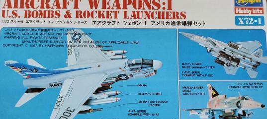 Âñåì äîáðîãî äíÿ! Ïîïàëà â ìîè ðóêè èíòåðåñíàÿ ðåòðî-êîðîáî÷êà îò èçâåñòíîé ôèðìû Hasegawa è òåïåðü ñ åå ñîäåðæèìûì ìîæíî ïîçíàêîìèòüñÿ ïîáëèæå. Ïî íåêîòîðûì äàííûì íàáîð âûïóñêàåòñÿ ñ 1987 ãîäà è ÿâëÿåòñÿ ïåðâûì èç ñåðèè U.S Aircraft weapons. Âñåãî â ýòîé ñåðèè 9 ÷àñòåé ãäå ïðåäñòàâëåíî ðàçëè÷íîå àâèàöèîííîå âîîðóæåíèå âîåííî-âîçäóøíûõ ñèë ÑØÀ, íà÷èíàÿ ñî âðåìåí âüåòíàìñêîé âîéíû è çàêàí÷èâàÿ ñåãîäíÿøíèì äíåì.