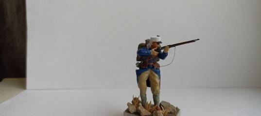 Была у меня фигурка из набора ICM "Французская линейная пехота Франко-Прусская война". Идею сделать легионера образца 20-х годов 20 века навеял фильм "Легионер" с Ван Даммом. А посему исходный образец претерпел следующие изменения: гетры поменял на ботинки с обмотками ("Звезда" Советская пехота), голова "Zebrano" (от немца отпилил родную кепи и добавил французскую из куска смолы), винтовка из набора "Французское оружие 1-й мировой (у "Лебеля" убрал штык), подсумки - оттуда же. основание - песок да камень, растительность - елочные иголки. Грунтовалакриловой грунтовкой "Кudo", красил акрилом "Звезда" и "Луч", "Тамия", тонировка - масляная краска с уайт-спиритом. Немного работы "Дремелем" и надфилем со скальпелем и такой-то матери - получаем французского легионера. Похож он, как приятель сказал, больше на Микки Рурка, чем на Ван Дамма. Скажу честно - головы "Zebrano" мне понравились. Исходный набор солдатиков тоже очень приличный - явных косяков не увидел и стыковка хорошая.