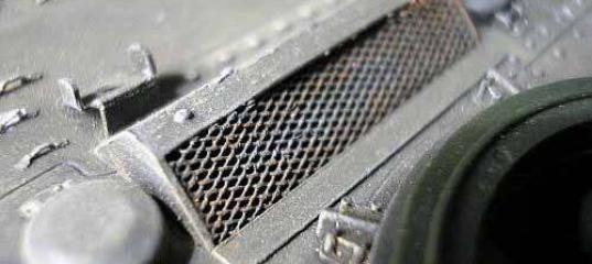 Èìèòàöèÿ ñåòîêÍà ìíîãèõ îáðàçöàõ òåõíèêè, îñîáåííî,áðîíåòàíêîâîé, èñïîëüçóþòñÿ ñåòêè, çàäà÷à êîòîðûõ çàùèòèòü âîçäóõîçàáîðíèêè è âåíòèëÿöèîííûå îòâåðñòèÿ îò ïîïàäàíèÿ ïîñòîðîííèõ ïðåäìåòîâ, íî ïðè ýòîì íå ìåøàòü ïðîõîæäåíèþ âîçäóõà. Íà ìîäåëÿõ èìèòàöèÿ ñåòêè ëèáî äà¸òñÿ â ïëàñòèêå, ëèáî ôîòîòðàâëåíèåì. Îáà âàðèàíòà íå óñòðàèâàþò ìíîãèõ è òóò îñòà¸òñÿ îäèí ïóòü - èìèòèðîâàòü ñåòêó, ñîáñòâåííî, ñåòî÷êîé. Õî÷ó ïîäåëèòüñÿ ñâîèì îïûòîì â ýòîì èíòåðåñíîì ïðîöåññå. |