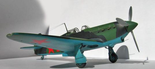 ÑáîðêàÏðîáëåì ïðè ñáîðêå ïðàêòè÷åñêè íå âîçíèêëî, òîëüêî ïðèøëîñü ïîäòî÷èòü çàäíþþ êðîìêó êðûëüåâ. Òàêæå íàäî áûòü ìàêñèìàëüíî âíèìàòåëüíûì ïðè ñòûêîâêå ôþçåëÿæà è êðûëüåâ – íîðîâèò îáðàçîâàòüñÿ ñòóïåíüêà, îò êîòîðîé äî êîíöà ÿ òàê è íå ñìîã èçáàâèòüñÿ. Íå î÷åíü ïîíðàâèëîñü, êàê ñàäèòñÿ íà ìåñòî ôîíàðü – ïîòðåáîâàëàñü øïàêë¸âêà-øëèôîâêà. Íî â îáùåì âïå÷àòëåíèÿ îñòàëèñü õîðîøèå. Îêðàñêà è òîíèðîâêàß íå ñìîã íàéòè íè îäíîé ôîòîãðàôèè ßêà 12 ÈÀÏ ÏÂÎ Ìîñêâû, ïîýòîìó âàðèàíòîì îêðàñêè âûáðàë ñòàíäàðòíûé êàìóôëÿæ ñ êðàñíûìè áîðòîâûìè íîìåðàìè. Ìîäåëü ñíà÷àëà áûëà ïîêðûòà ãðóíòîì Tamiya, ñòðàâëåííûì èç áàëëîíà, ïîñëå ýòîãî øëèôîâêà è îêðàñêà àêðèëîì Tamiya. Ãîëóáîé è çåë¸íûé ìåøàë ñàì ïî ðåöåïòàì Ìèõàèëà èç Wiki, êàìóôëÿæ – ÷¸ðíûé ìàòîâûé. Ìàñêè äëÿ êàìóôëÿæà äåëàë èç ñêîò÷à, ÷òîáû ïîëó÷èëèñü ÷åòêèå ãðàíèöû öâåòîâ – ëåòîì 41-îãî ñàìîë¸òû êðàñèëè êèñòüþ… Ïîñëå îêðàñêè ïîëîæèë òðè ñëîÿ Future, ïðèâàðèë äåêàëè æèäêîñòüþ Testors, è “çàôóòóðèë” åù¸ ïàðó ñëî¸â. Ñëåäîì îòòîíèðîâàë ìîäåëü ïèãìåíòàìè Mig è Tamiya, è íàðèñîâàë êèñòüþ íåìíîãî ñêîëîâ.  çàêëþ÷åíèå ïîëîæèë äâà ñëîÿ ôèíèøíîãî ïîêðûòèÿ Àêàí, ñâåðõó äóíóë àêàíîâñêèì æå ìàòîâûì ëàêîì.