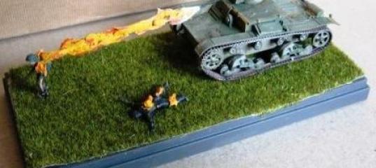 UM 1/72 XT26 - Îãíåì è ìå÷îìÄîáðûé äåíü, Òîë÷êîì äëÿ ñîçäàíèÿ âèíüåòêè ïîñëóæèëà ñòðî÷êà èç èíñòðóêöèè ê ÕÒ26 îò Óì, «òàíê àêòèâíî ïðèìåíÿëñÿ íà íà÷àëüíîì ýòàïå Âλ. . Êàê èçâåñòíî, îãíåìåòíûå òàíêè âîåâàëè â àðìèÿõ âñåõ ñòðàí ó÷àñòíèö Âòîðîé Ìèðîâîé è â îñíîâíîì ïðîòèâ æèâîé ñèëû, õîòÿ âñïîìèíàþò îá ýòîì íåîõîòíî è èñòîðè÷åñêèõ îïèñàíèé èñïîëüçîâàíèÿ îãíåìåòîâ íåìíîãî. Èíòåðåñíî áûëî òàêæå ïîïðîáîâàòü ñûìèòèðîâàòü ñòðóþ îãíÿ.  ðàáîòå èñïîëüçîâàí óæå óïîìÿíóòûé âûøå ÕÒ 26 îò Óì è íåìåöêàÿ ïåõîòà îò Revell. Îãîíü — øïàêëåâêà íà ëèòíèêå. |