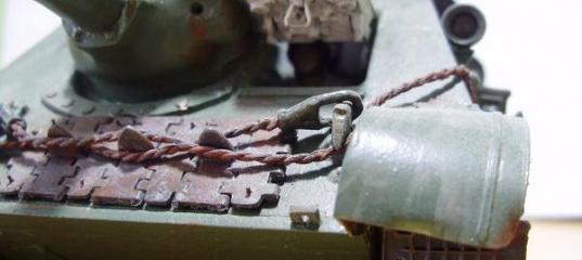 Êîãäà çàêîí÷èë ñ ïîòðîõàìè, ïåðåøåë ê äîäåëêå õîäîâîé ÷àñòè, ò.ê. áûëè â íàëè÷èè êàòêè îò Ò-34-85 ïðîèçâîäñòâà Ìàêåòà, ðåøèë ïîñòàâèòü äâà èç èõ, ÷òîáû íåìíîãî ðàçíîîáðàçèòü ìîäåëü. Êðûëüÿ ñäåëàë èç êðûøåê îò Äîøèðàêà. Áàêè äåðæàòñÿ íà êðîíøòåéíàõ, êàêèå áûëè íà Ò-34, ò.ê. îò ðîäíûõ - ìàëî, ÷òî îñòàëîñü. Áûëè ñðåçàíû èìèòàöèè ñêîá è ñäåëàíû ñêîáû èç ïðîâîëîêè, âåäðà ñäåëàíû èç êðûøåê îò Äîøèðàêà, áî÷êà îò êàêîãî-òî Õàììåðà, ñàìè òàíêèñòû - äâîå îò Tamiya, äâîå îò Çâåçäû. Êðàñèë èç àýðîãðàôà íèòðîêðàñêîé, íàäïèñè äåëàë êèñòüþ. Íà ìîäåëü óøëî ïîëòîðà ãîäà. |