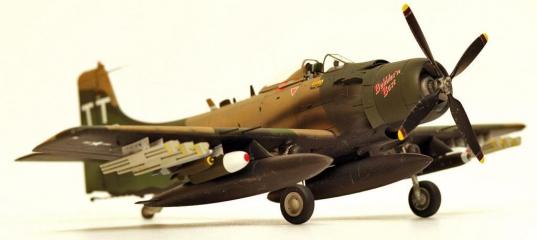 Tamiya 1/48 Skyraider A-1H - Âüåòíàìñêèé òèõîõîä…Èõ ìàøèíû ëåòàþò è íî÷üþ è äíåì, “Ñàìîë¸ò-ñîëäàò”- Douglas Skyraider ïî ïðàâó çàñëóæèë ýòî ïî÷¸òíîå çâàíèå. ×åòâåðòü âåêà íàõîäÿñü íà âîîðóæåíèè âîåííî-âîçäóøíûõ è âîåííî-ìîðñêèõ ñèë ÑØÀ, ïðè÷¸ì â òî âðåìÿ, êîãäà óæå âñå ïîíèìàëè, ÷òî áóäóùåå – çà ðåàêòèâíîé àâèàöèåé. Áåçíà䏿íî óñòàðåâøèé, òèõîõîäíûé, íî æèâó÷èé è íà䏿íûé “Ñêàéðåéäåð” âûíåñ íà ñåáå âñå òÿãîòû Êîðåè è Âüåòíàìà, ýôôåêòèâíî âûïîëíÿÿ îáÿçàííîñòè øòóðìîâèêà, ñàìîë¸òà ýñêîðòà, ñïàñàòåëÿ è äàæå èñòðåáèòåëÿ (îäèí èç ïåðâûõ ÌèÃ-17, ñáèòûõ âî Âüåòíàìå, áûë óíè÷òîæåí îãí¸ì 20 ìì ïóøåê “Ñêàéðåéäåðà” À1Í, óïðàâëÿåìîãî ëåéòåíàíòîì ÂÌÑ ÑØÀ ñ ãîâîðÿùåé ôàìèëèåé Õàðòìàí). Ìîùíîå áîðòîâîå âîîðóæåíèå, 15 òî÷åê ïîäâåñêè, áîëüøàÿ äàëüíîñòü ïîë¸òà, ñåðü¸çíàÿ áðîíèðîâêà – âñ¸ ýòî ïîçâîëÿëî èñïîëüçîâàòü ïîðøíåâîãî “ñòàðè÷êà” â òàêèõ ïåðåäåëêàõ, â êîòîðûõ ïàñîâàëè ñîâðåìåííûå “Ñêàéõîêè” è “Èíòðóäåðû”. Îäèí òàêîé “ñîëäàò” èç 602-îãî ñïåöèàëüíîãî îòðÿäà ñ àâèàáàçû BienHoa, ðàñïîëîæåííîé â Þæíîì Âüåòíàìå íåäàëåêî îò Ñàéãîíà è ñòàë ïðîòîòèïîì ìîåé ìîäåëè. |