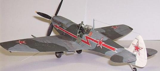 Äåêàëè: ïîâåðõíîñòü ìîäåëè ïîêðûòà äâóìÿ ñëîÿìè ðàçáàâëåííîé ôóòóðîé, íà êîòîðóþ íàíåñåíû äåêàëè ICM. Ïëàíèðîâàëîñü èñïîëüçîâàíèå àíãëèéñêèõ òåõíè÷åñêèõ íàäïèñåé, íî ïðè ïðîñìîòðå ôîòîãðàôèé ñîâåòñêèõ Spitfire èõ çàìå÷åíî íå áûëî. Òåì áîëåå, ó÷èòûâàÿ òî, ÷òî â 1945 ã. ñàìîëåòû ïîñòóïàëè ïî ëåíä-ëèçó íàïðÿìóþ ñ çàâîäà èçãîòîâèòåëÿ óæå ñ ñîâåòñêèìè ÎÇ â òåõíè÷åñêèõ íàäïèñÿõ îòïàëà íåîáõîäèìîñòü. Êà÷åñòâî äåêàëè ICM æåëàåò ëó÷øåãî. Ïðè íàíåñåíèè îíè ðàçâàëèëèñü íà íåñêîëüêî ÷àñòåé, ïðèõîäèëîñü ñîáèðàòü, íà æèäêîñòè SET è SOL íå ðåàãèðóþò, ïîñëå ïîäðåçêè âçÿë èõ òîëüêî ðàñòâîð AGAMA HYPERSOL STRONG, ëþáåçíî ïðåäîñòàâëåííûé Ñàí_Ñàíû÷åì, êðîìå òîãî, äåêîëè ïðîñâå÷èâàþòñÿ. Çíàêè ãâàðäèè áûëè èñïîð÷åíû, âçàìåí èñïîëüçîâàë äåêîëè «Áåãåìîò». Çíàê Ãâàðäèè ðàñïîëîæåí íà îñíîâàíèè ôîòî.