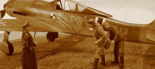 Tamiya 1/48 FW-190D9 Rote 13Ñàìûì íåîáû÷íûì, íà ìîé âçãëÿä, àâèàöèîííûì ïîäðàçäåëåíèåì âòîðîé ìèðîâîé áûëî JV44 ïîä êîìàíäîâàíèåì Àäîëüôà Ãàëëàíäà. Èñòîðèÿ ýòîãî ïîäðàçäåëåíèÿ «ýêñïåðòîâ» øèðîêî èçâåñòíà, äà è ðå÷ü ñåé÷àñ íå î íåì, à îá ýñêàäðèëüå, êîòîðàÿ ïðèêðûâàëà «262-å» - Papagai Staffel («Ïîïóãàéñêàÿ ýñêàäðèëüÿ»). Çåíèò÷èêàì, ïðèêðûâàâøèì àýðîäðîì JV44, áûë îòäàí ïðèêàç-ñáèâàòü âñå «íåðåàêòèâíîå», ïîýòîìó ñíèçó «äîðû» áûëè îêðàøåíû êðàñíûì â áåëóþ ïîëîñêó (îòñþäà è íàçâàíèå). Êîìàíäèðîì ïîäðàçäåëåíèÿ áûë íàçíà÷åí ãàóïòìàí Âàëüäåìàð Âþáêå(áîðòîâîé ¹ «3»). Èçâåñòíû ÷åòûðå ìàøèíû ïîäðàçäåëåíèÿ: òðè Ä-9 è îäèí Ä-11. ¹1 - ñàìîëåò Çàõñåíáåðãà, Rote 1. Íàäïèñü - áàâàðñêàÿ ïîñëîâèöà "Verkaafts mei Gwand 'I foahr in himmel!" ("Ïðîäàéòå ìîþ îäåæäó, ÿ îòïðàâëÿþñü â íåáåñà!") ¹2 - ñàìîëåò Âþáêå, Rote 3. Íàäïèñü - "Im Auftrage der Reichsbahn" ("Ïî ïðèêàçó Ðàéõñáàííà"). (Deutsche Reichsbahn - "Ãåðìàíñêèå Ãîñóäàðñòâåííûå æåëåçíûå äîðîãè"). ¹3 - íåèçâåñòíûé ïèëîò, Rote 4. Íàäïèñü - "Der nachste Herr dieselbe Dame!" ("Ñëåäóþùåìó ãîñïîäèíó òó æå äàìó") ¹4 - ñàìîëåò Ôàáåðà, Rote 13. Íàäïèñü - "Rein muss err" und wenn wir beide weinen!" ("Îí èäåò, ïðè òîì, ÷òî ìû áóäåì îáà ïëàêàòü!") Ìíå âñåãäà íðàâèëèñü «ïîïóãàéñêèå» îêðàñêè ñàìîëåòîâ (êàê âïðî÷åì, è áîëüøèíñòâó «àâèàòîðîâ»), ïîýòîìó ïîñëå ïðèîáðåòåíèÿ Òàìèåâñêîãî FW-190D9 ñðàçó ðåøèë – áóäó äåëàòü ñàìîëåò èç «ïîïóãàéñêîé ýñêàäðèëüè»! Áûëà ïðèîáðåòåíà äåêàëü Eagle Cals. Äåêà, ïðÿìî ñêàæåì, øèêàðíàÿ, äàíû âñå ÷åòûðå áîðòà ñî âñåé òåõíè÷êîé, öâåòà ÿðêèå, èíñòðóêöèÿ – öâåòíîé áóêëåò ñ ïîäðîáíåéøèìè êàðòèíêàìè è îïèñàíèåì êàæäîãî «áîðòà», íî… Êàê ïîòîì âûÿñíèëîñü, ïðàêòè÷åñêè áåç êëååâîé îñíîâû, áåç «ñïåöæèäêîñòåé» äåðæàòüñÿ íà ìîäåëè ñîâñåì íå õîòåëà.