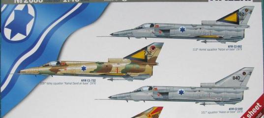 ÂâåäåíèåÊîíå÷íî, õî÷åòñÿ äåòàëüíî âñå ðàññêàçàòü ïðî ìîäåëü è ïîäðîáíî âñå ðàñïèñàòü. Íî ÿ ïîñòàðàþñü áûòü áîëåå êðàòêèì è ñäåëàòü îáçîð áîëåå ñäåðæàííûì è åìêèì. Èñòîðèþ ñîçäàíèÿ è ïðîèñõîæäåíèÿ ìíîãîöåëåâîãî èñòðåáèòåëÿ IAI Kfir ÿ ðàññêàçûâàòü íå ñòàíó. Ýòà èñòîðèÿ äîñòîéíà îòäåëüíîé êíèãè, ïîñâÿùåííîé ýâîëþöèè Mirage V â IAI Nesher è åãî äàëüíåéøåé ýâîëþöèè â IAI Kfir. Âñå ýòî ìîæíî ïðî÷åñòü íà Airwar è Wikipedia. ÏðîèñõîæäåíèåÊðàñèâàÿ êîðîáêà è çàìàí÷èâàÿ äåêàëü – òî, íà ÷òî ëþáèò êëåâàòü íåñâåäóùèé ìîäåëèñò. Ýòî îäèí èç íåñêîëüêèõ äâèãàòåëåé ìîäåëüíîãî áèçíåñà. È êàê ýòî ÷àñòî áûâàåò, âíåøíÿÿ êðàñîòà îáåðòêè íå ñîîòâåòñòâóåò âíóòðåííåé. Ýòà ìîäåëü ðîäîì èç êîíöà 70-õ ãîäîâ. Ïðåññ-ôîðìà áûëà ðàçðàáîòàíà ôèðìîé ESCI. Ïîä åå ëîãîòèïîì ìîäåëü âûïóñêàëàñü â ñëåäóþùèå 15 ëåò. Ñ ðàçâàëîì ESCI, åå ôîðìû îòîøëè ê Italeri, êîòîðàÿ â 2009 ãîäó âûïóñòèëà «ëèìèòêó» special edition. Îñòàåòñÿ òîëüêî óçíàòü, íàñêîëüêî êîøåðíà 30-ëåòíÿÿ ìîäåëü â íàøè äíè. Ñîäåðæèìîå êîðîáêå ñîäåðæàòñÿ 3 ëèòíèêà ñåðîãî ïëàñòèêà è 1 ëèòíèê èç ïðîçðà÷íîãî ïëàñòèêà, çàïå÷àòàííûå â ïàêåòû, êðàñèâàÿ äåêàëü, èíñòðóêöèÿ. Âñåãî 68 äåòàëåé, èç íèõ 2 èç ïðîçðà÷íîãî ïëàñòèêà - ñîâñåì íå ãóñòî äëÿ 48-ãî ìàñøòàáà. ÈíñòðóêöèÿÏðîñòåíüêàÿ ãðàôèêà 30-ëåòíåé äàâíîñòè, ðàñïå÷àòàíà íà ëèñòàõ áîëüøîãî ôîðìàòà. Äåêàëüíàÿ êàðòà ÿñíà è ïîíÿòíà. Ìåñòàìè êîå-÷åãî íîâè÷êàì áóäåè íåïîíÿòíî, íî ýòî íå êðèòè÷íî. Òàê êàê âñå ðàâíî ìîäåëü íå äëÿ íîâè÷êîâ. ÄåêàëüÍà âèä êàê Cartograf, íî çíàêîìîé íàäïèñè íåò. Åñòü âñÿ îñíîâíàÿ òåõíè÷êà. Êà÷åñòâî ïå÷àòè íà âûñîòå, íî åñòü îùóùåíèå, ÷òî øðèôòû òåõíè÷êè ïåðåðàçìåðåíû. Ïðèáîðêà è ïóëüòû áîêîâûõ ïàíåëåé äàíû â äåêàëè, íî íè÷åãî îáùåãî ñ ðåàëüíîñòüþ íå èìåþò. Âñåãî â äåêàëè ïðåäëàãàþòñÿ 4 âàðèàíòà: