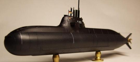 Hobby Boss 1/350 U-33 (Type212)Ñîáðàë íà äîñóãå íîâèíêó îò Õîááè Áîññà â 350-ì. Ýòî ìîäåëü ñîâðåìåííîé ãåðìàíñêîé ÍÀÏË 212 ïðîåêòà. Ïðîòîòèï 1987 ãîäó â ñâÿçè ñ îòìåíîé îãðàíè÷åíèé íà âîäîèçìåùåíèå ïðîåêòèðóåìûõ ñóáìàðèí â ðóêîâîäñòâå áóíäåñìàðèíå áûëî ñôîðìóëèðîâàíî òàêòèêî-òåõíè÷åñêîå çàäàíèå íà ðàçðàáîòêó è ñòðîèòåëüñòâî âîñüìè îêåàíñêèõ ïîäâîäíûõ ëîäîê íà áàçå ïðîåêòà 210. Îäíàêî, â èòîãå ïîëó÷èëñÿ êîðàáëü âíåøíå ìàëî ïîõîæèé íà 210 ïðîåêò. Íîâûìè â êîíñòðóêöèè ÿâëÿþòñÿ ðàñïîëîæåíèå ãîðèçîíòàëüíûõ ðóëåé íà îãðàæäåíèè ðóáêè è ïðèìåíåíèå Õ-îáðàçíûõ êîðìîâûõ ðóëåé äëÿ ëó÷øåé óïðàâëÿåìîñòè ëîäêîé â ïîäâîäíîì ïîëîæåíèè. Êîðïóñ ëîäêè èìååò ïëàâíûå îáòåêàåìûå îáâîäû â îòëè÷èè îò ëîäîê ïðåäûäóùèõ ïðîåêòîâ. Îáùèå õàðàêòåðèñòèêèÂîäîèçìåùåíèå: 1450 ò íàäâ./1830 ò ïîäâ., Äëèíà 56 ì, øèðèíà 7 ì, îñàäêà 6 ì.
