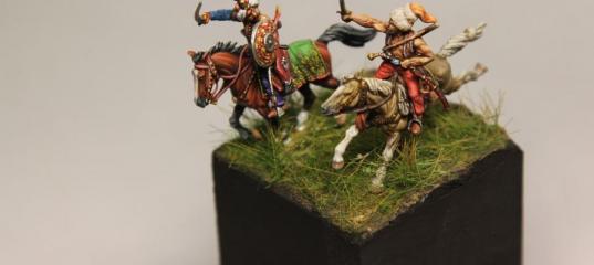 Ïî ìåðå ãîòîâíîñòè êàçàêà ïðèõîäèëà ìûñëü î òîì, ÷òî åìó íóæåí ïðîòèâíèê - ðàññìàòðèâàëèñü âàðèàíòû ïîëüñêîãî êðûëàòîãî ãóñàðà, ìîñêîâèòà, òóðêà èëè òàòàðèíà. Ñàìûì ñèëüíûì áûëî æåëàíèå ïðîòèâîïîñòàâèòü åìó åâðîïåéñêîãî êèðàñèðà èëè ðåéòàðà – íî ýòè ïàðíè â äîñòîéíîì êà÷åñòâå â 72-ì ìàñøòàáå îòñóòñòâóþò êàê òàêîâûå. Êðûëàòûé ãóñàð áûë îòâåðãíóò, ïîñêîëüêó íåîõîòà áûëî âåñòè äîëãèå äîðàáîòêè çâåçäîâñêèõ ôèãóð. À âîò òóðîê ïîäîøåë â ñàìûé ðàç ïî âñåì êðèòåðèÿì, â ïåðâóþ î÷åðåäü èç-çà íåîãðàíè÷åííîãî ïðîñòîðà â îòîáðàæåíèè ïðåäìåòîâ ðîñêîøè íà ôèãóðêå, ñòàíîâÿñü ñâîåîáðàçíûì àíòèïîäîì áåäíîâàòîãî êàçàêà. Äëÿ ýòîãî áûëà èçáðàíà ôèãóðà ñî ùèòîì (ìîæíî ñäåëàòü ðèñóíîê), â äëèííîì õàëàòå (âîçìîæíîñòü ïðîðèñîâàòü óçîðû íà îäåæäå), ïî òîé æå ïðè÷èíå è ëîøàäü áûëà ïîäîáðàíà ñ áîëüøèì âàëüòðàïîì. Ñàìà ìèíèàòþðà áûëà ñëåãêà ïîäêîíâåð÷åíà, äàáû ãàðìîíè÷íî ñìîòðåëàñü â êîìïîçèöèè ñ êàçàêîì. Òåõíèêà ðîñïèñè èñïîëüçîâàëàñü òà æå ÷òî è íà çàïîðîæöå, òîëüêî àáñîëþòíî èíûì áûë ïîäáîð öâåòîâ – îñíîâà - êðàñíî-ðûæå-êîðè÷íåâàÿ ãàììà ñ äîáàâëåíèåì íåêîòîðûõ ÿðêèõ äåòàëåé. Èçþìèíêîé ðîñïèñè ïîñòàðàëñÿ ñäåëàòü óçîð íà âàëüòðàïå ëîøàäè, ìàñòü êîòîðîé òàê æå áûëà íåñëó÷àéíî âûáðàíà çîëîòèñòî-ãíåäîé, äëÿ ïóùåé íàðÿäíîñòè è ÿðêîñòè ôèãóðû. Âîîáùå ïðè ðîñïèñè êàâàëåðèñòà ëîøàäü çàñëóæèâàåò åäâà ëè íå áîëüøåãî âíèìàíèÿ ÷åì âñàäíèê. Äàæå íå î÷åíü óäàâøèéñÿ êàâàëåðèñò áóäåò äîñòîéíî ñìîòðåòüñÿ íà õîðîøî ðàñïèñàííîé ëîøàäè, íî íåïðàâèëüíûé îêðàñ ëîøàäè âåñüìà èñïîãàíèò ðàáîòó, êàê áû íå ñòàðàòüñÿ ñ ðîñïèñüþ âñåõ ïðî÷èõ äåòàëåé.