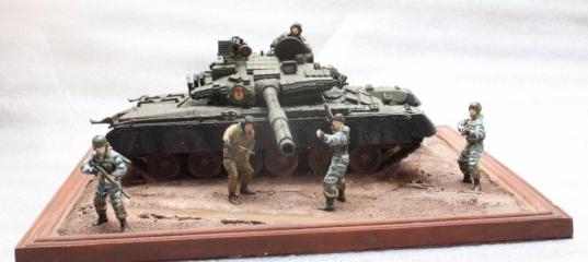 Äèîðàìà 1/35 Íóæíà îãíåâàÿ ïîääåðæêàÇäðàâñòâóéòå, óâàæàåìûå êîëëåãè. Õî÷ó ïðåäñòàâèòü âàì ñâîþ äèîðàìó «Íóæíà îãíåâàÿ ïîääåðæêà». Ìîäåëü «Òàíê Ò 80 Á» îò Ôèðìû «Çâåçäà». Ôèãóðêè ýòîé æå ôèðìû. Òàíê êðàñèë êðàñêîé «Çâåçäà» ìàñòåð àêðèë ¹55. Ñìûâêè îò TAMIYA, ÷åðíàÿ è êîðè÷íåâàÿ. Îñíîâàíèå äèîðàìû, ôîòîðàìêà. Èìèòàöèþ ãðÿçè íà òàíêå, äåëàë ñ ïîìîùüþ ïðîñåÿííîãî ïåñêà ñìåøàííîãî ñ êëååì ÏÂÀ è äîáàâëåíèåì êðàñêè îò TAMIYA XF-52. Çåìëÿ âûïîëíåíà ñ ïîìîùüþ ãèïñà