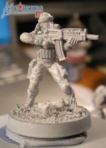 А это собственно в сборке и после грунта. Ветерана (который в каске) нужно будет немного ошлифовать. Загрунтовано Mr. Surfacer 1000 Whirte и затем слой White Base.