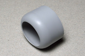 Капот. По моему глубочайшему убеждению, в модели (и на чертежах) он слегка маловат, кроме того передняя часть должна быть несколько более округлой. Я выдавил новый, используя капот P&J в качестве пуансона, заполнив его изнутри эпоксидной смолой (никак не думал, что полимеризация такого сравнительно небольшого количества смолы приведет к столь сильному нагреву – к пластику нельзя было прикоснуться, но, к счастью, сильной деформации не произошло).