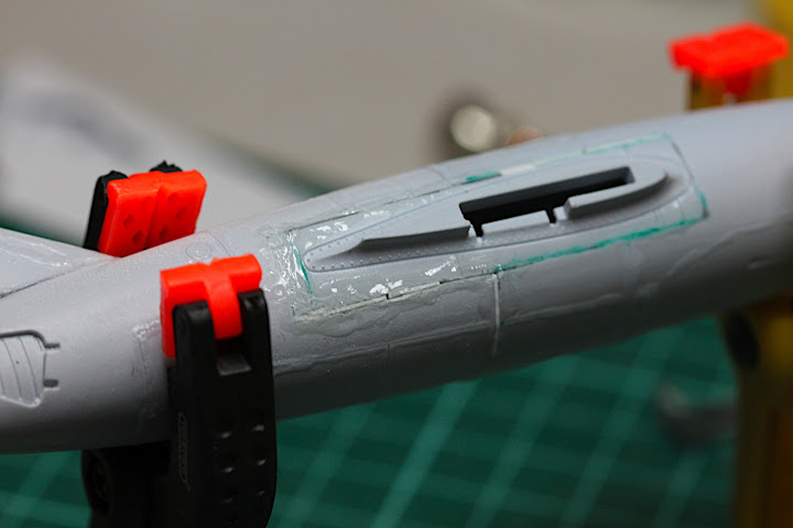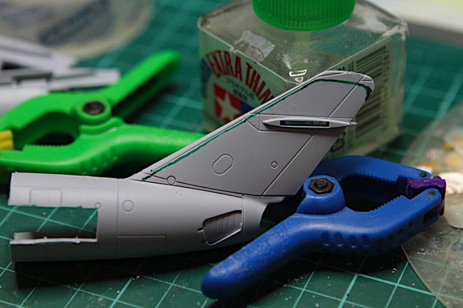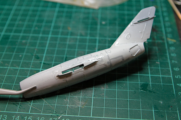 На данный момент куски фюзеляжа собраны, зашкурены швы в местах распилов. Собираю кабину.