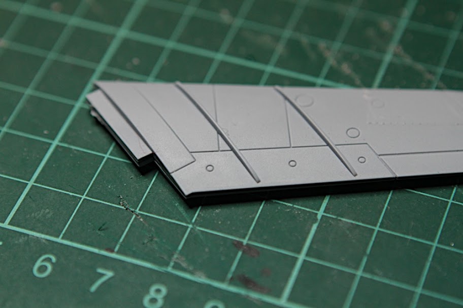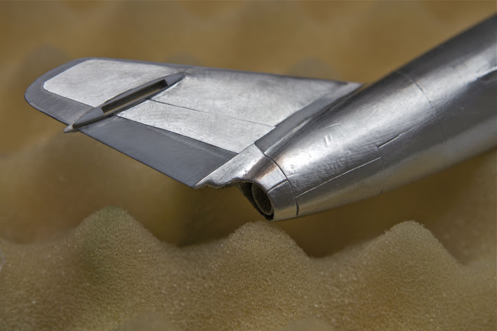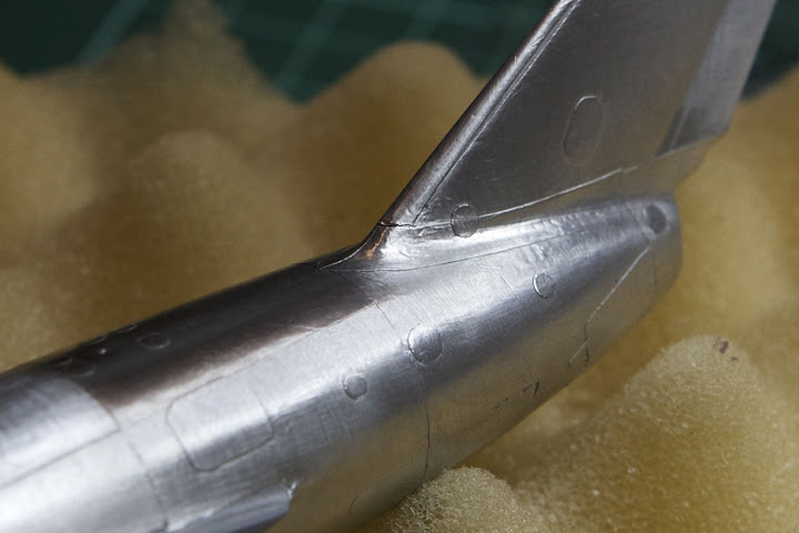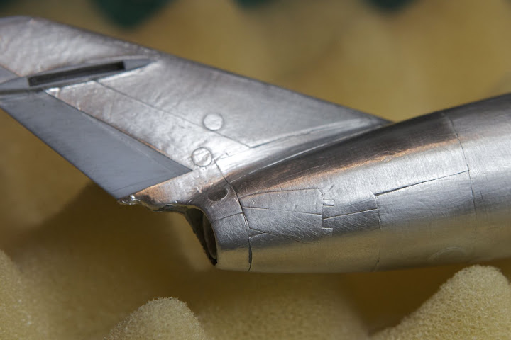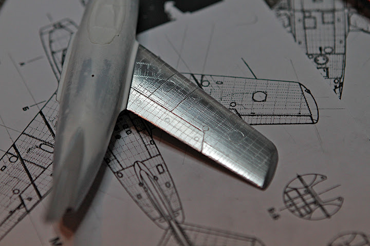 на крыльях расшивка прорезана по чертежу, но фольга наклеена на отдельные панели. На фюзеляже расшивки нет. Фольга также будет наклеиваться панелями по чертежу. Места стыков и будут "линиями расшивки"...