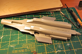 К сожалению - двигаюсь не так быстро как хотелось бы - вклеил носовой конус, грубо вышливфовал места соединения деталей, первично загрунтовал