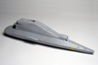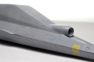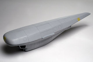 Далее - Surfacer, расшивка, клепка, все, естественно, от фонаря. С Surfacer'ом получилась накладка - видимо, из-за того, что первый слой я зачем-то решил положить кистью, а так же, наверное, из-за свойств пластика, Surfacer обнаружил тенденцию отваливаться, что несколько помешало при нарезке расшивки и клепки, и, возможно, еще вылезет впоследствии.