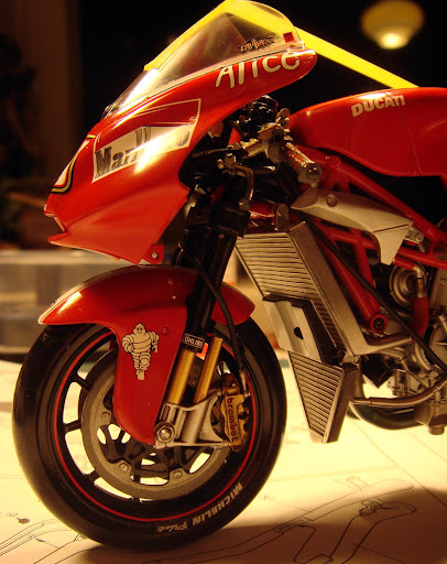 Очень интересно,и красиво..Буду следить за процессом Дукатти 996 и 999 мои самые любимые,жаль только,что ненадежные они донельзя..Всё время поломки....Зато действитльно очень красивые...